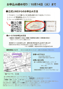 アルパカからのお知らせ>【食べいつ】食べる希望を支援するネットワークいつかいち~食べることをいつまでも~:2025年10月18日10時~12時inアルパカハウス2階『オーラルフレイル・フレイル予防』をテーマに講演・骨盤体操・体験イベントを開催します!専門職の方をはじめ地域の皆様もぜひご参加ください!詳細は案内チラシをご覧ください★